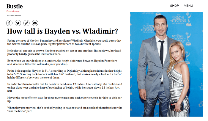 One of my favorite real-life examples comes from Hayden Panettiere and Wladimir Klitschko. They were a former celebrity couple that had a stark height difference:
