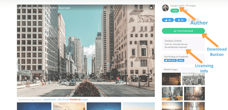 Step 2: Click on the download button to begin downloading the image. Be sure to check the licensing info to see if there are any requirements for using the image.