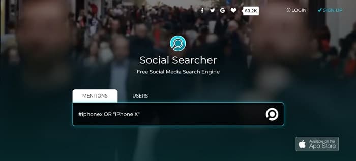 Social media is the next main source, and again you have a myriad of tools at your disposal. For example, Social Searcher is a free platform that allows you to search by hashtags or topics and brings up every post published on the major social media sites.