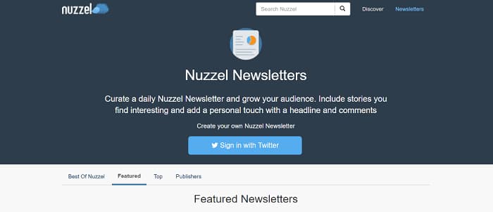 Nuzzel is a free Twitter and Facebook news monitoring and research tool that also sends out automatically generated or self-curated social newsletters. Subscribers to your newsletter receive a daily email containing the top five stories from your Nuzzel feed or any stories you want to include.