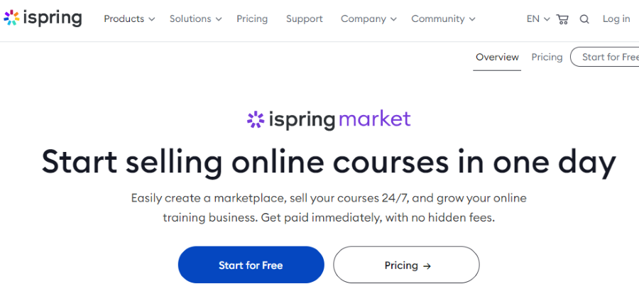 Ispring Market is a powerful, user-friendly online course software to help you create unique courses and build e-commerce reach.