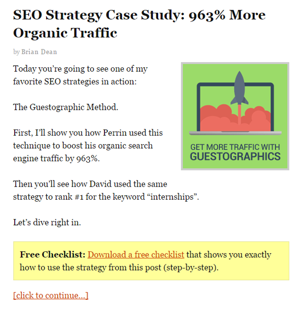Brian Dean from Backlinko.com uses this strategy on his home page with his “Free Checklist” box: